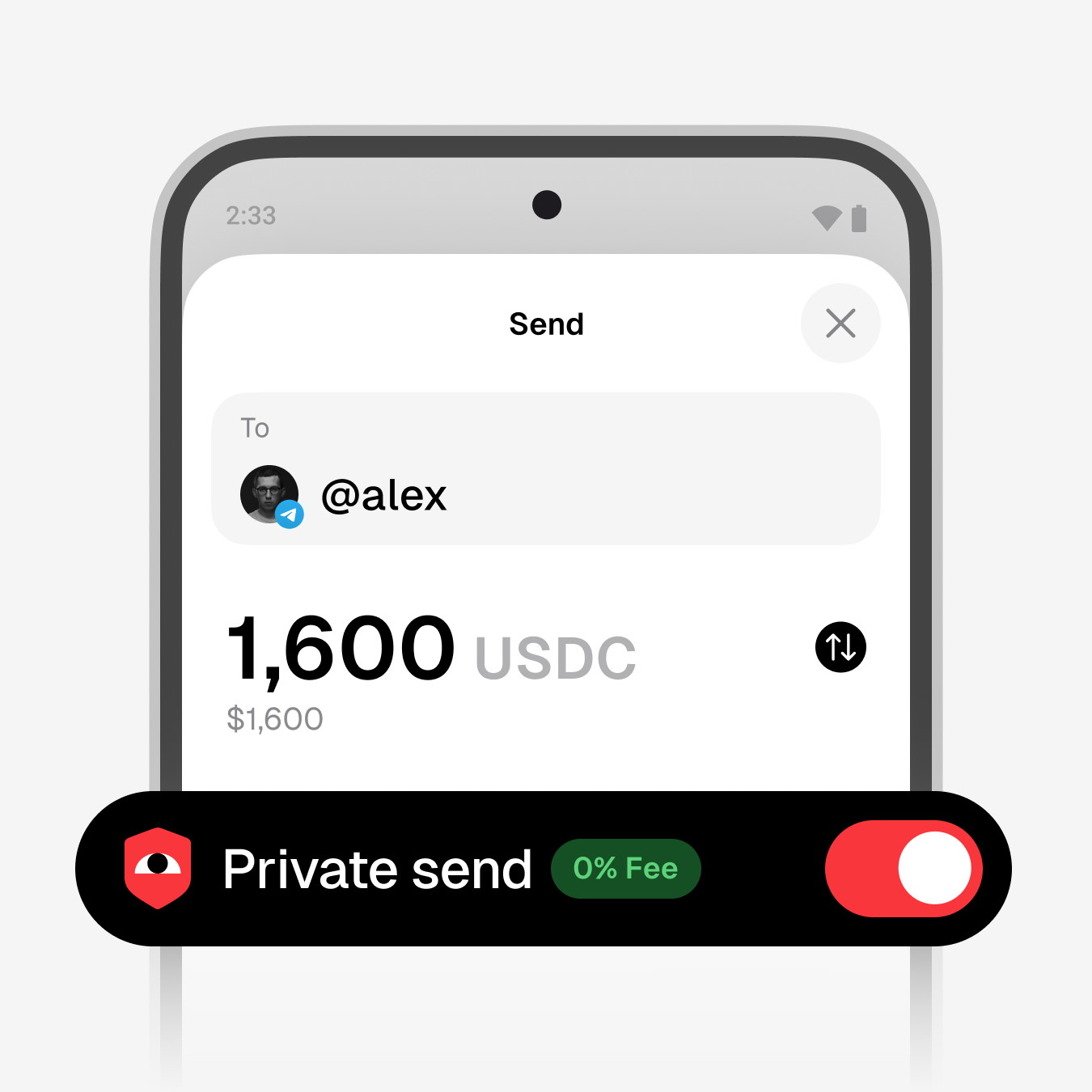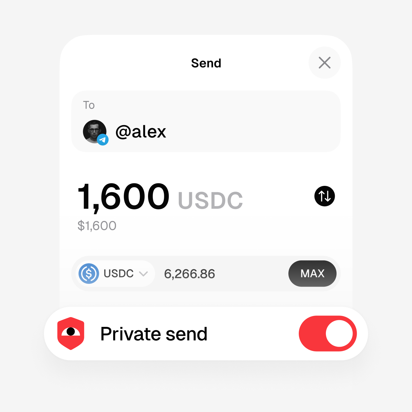 Now you can privately send Solana and SPL tokens with minimal fees. Don't doxx your wallet address either — just use their Telegram username instead.